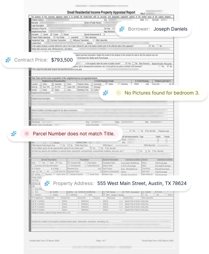 Analyze appraisals automatically so your underwriters get cleaner inputs and make faster decisions.