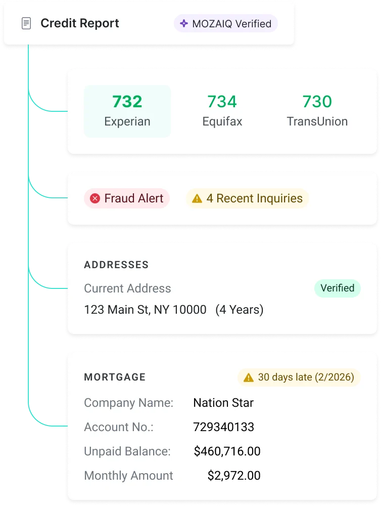 MOZAIQ automates up to 80% of the routine underwriting task load by validating assets, credit, income, and AUS compliance upstream — before the file ever reaches the underwriter. The result is cleaner, condition-free files that let underwriters focus on credit judgment instead of data checking. Clients have achieved up to a 50% reduction in underwriting time while maintaining higher quality standards.